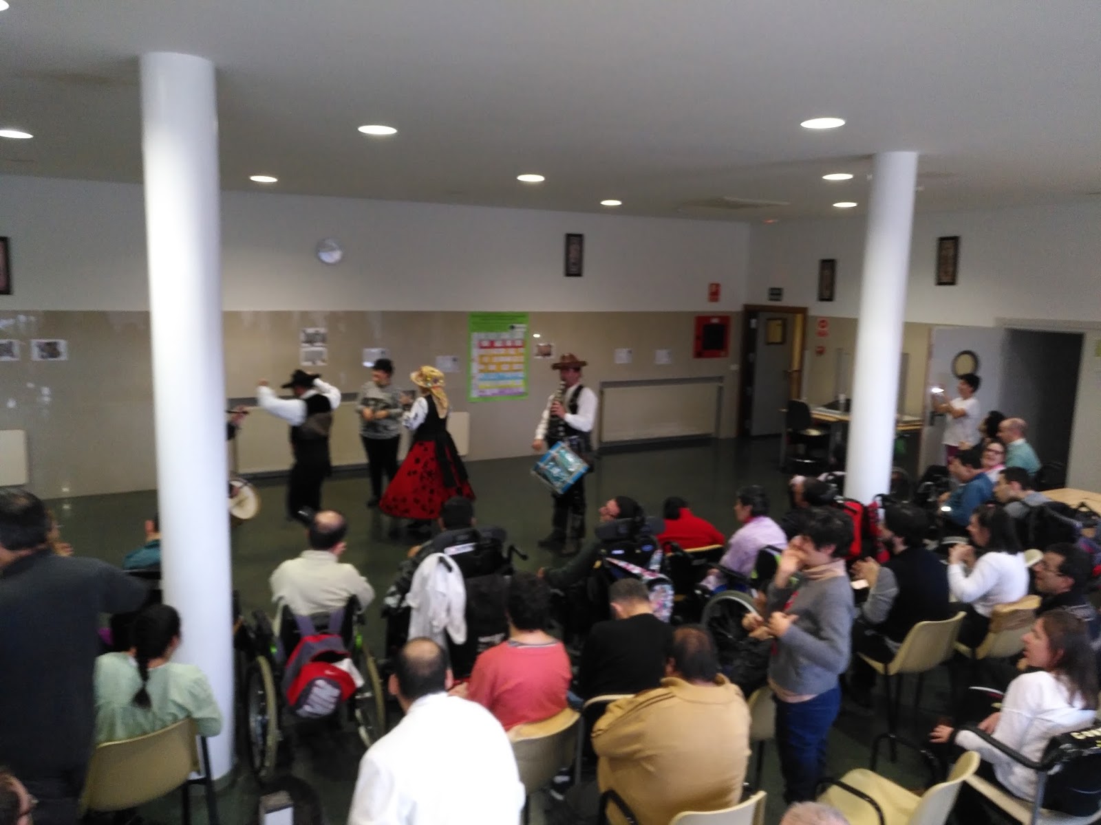 Nos han amenizado la tarde con música folclóricas y han incorporado villancicos . Hemos disfrutado un montón , bailando y cantando; para terminar la semana, no ha estado nada mal .